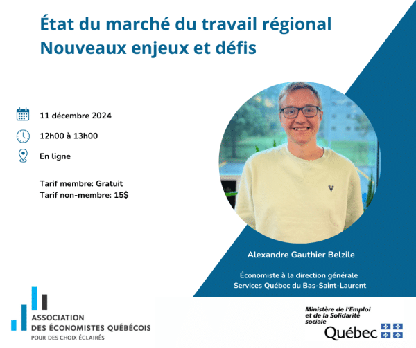 Alexandre Gauthier Belzile est un économiste couvrant le marché du travail de la région du Bas-Saint-Laurent depuis plus de 10 ans.