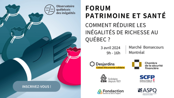 C’est pourquoi l’Observatoire québécois des inégalités organise un forum sur cet enjeu le 3 avril 2024, et plus particulièrement autour des avenues susceptibles de réduire les inégalités de patrimoine, dans une perspective de santé durable.
