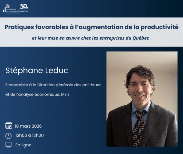Ce webinaire constitue un moment privilégié pour discuter des enjeux vécus par les entreprises québécoises et les outils qu’offrent les institutions et organismes en développement économique pour les soutenir à relever ces défis.